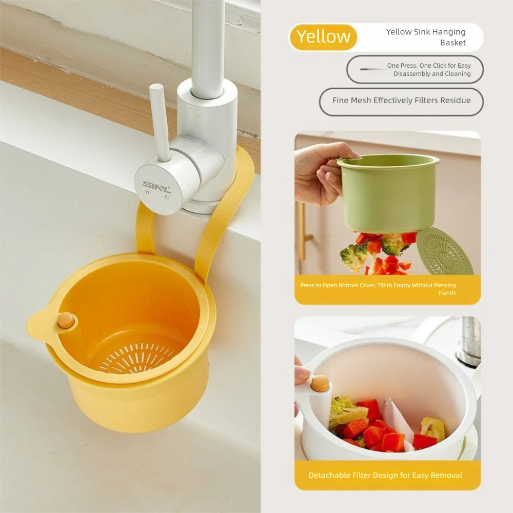 Press-to-Empty Sink Strainer Basket – Hanging Kitchen Drain Filter with Detachable Bottom