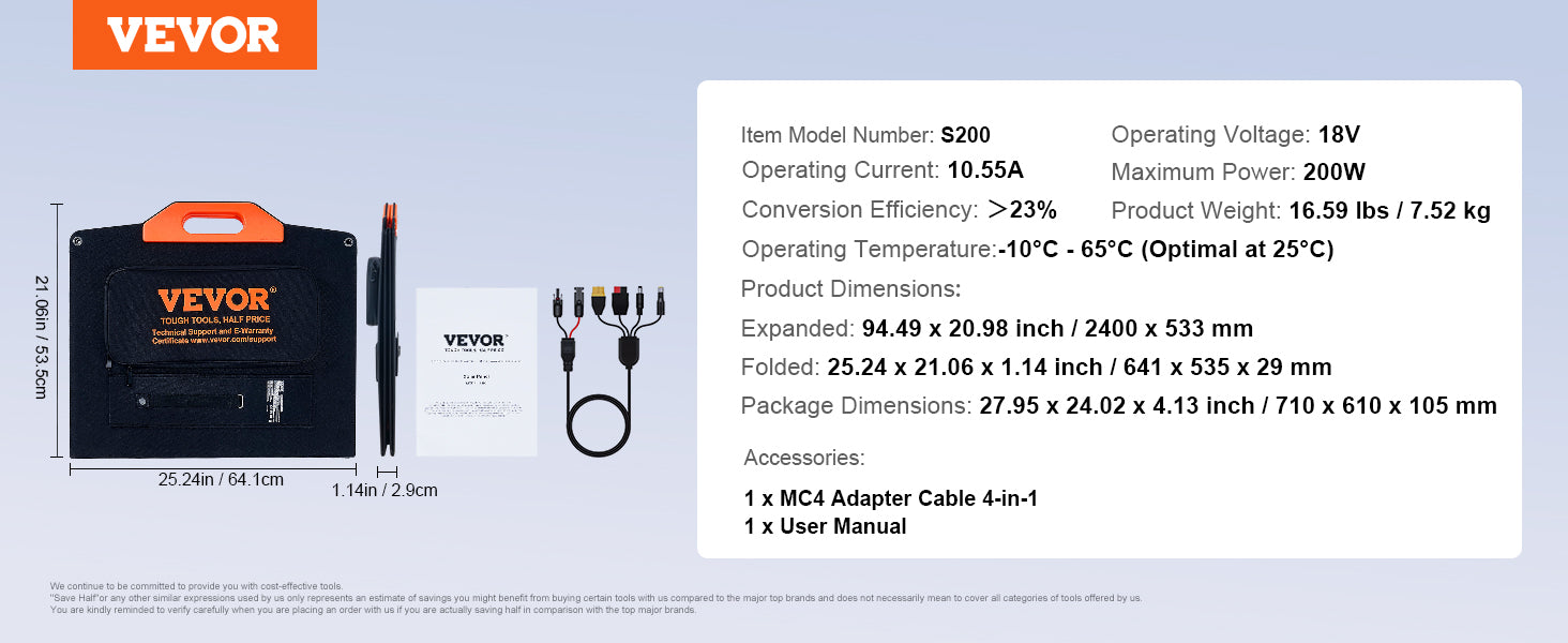 Comes with built-in MC4 cable and a 4-in-1 adapter, compatible with most major power stations (Jackery, Bluetti, EcoFlow, Anker, etc.).