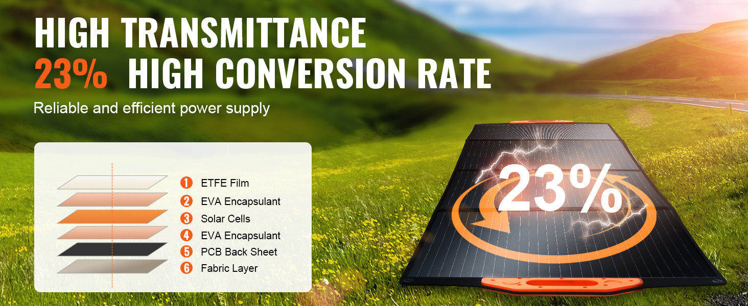 This Foldable Monocrystalline Solar Panel delivers reliable, high-efficiency energy for all your outdoor adventures and backup power needs. With premium ETFE coating, >23% energy conversion, and all-weather durability, it’s your go-to for camping, hiking, RVs, or emergency home use.